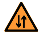 试题解释:双向交通:双向行驶的道路上,采用天然的或人工的隔离措施,把上下行交通完全分离,由于某种原因(施工、桥、隧道)形成无隔离的双向车道时,须设置此标志。 |