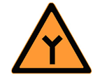 99、图中标志是_____,表示前方有合流车道,注意与驶入主车道的车辆保持安全距离。
