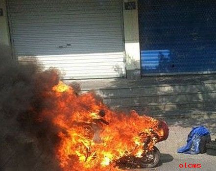 5月28日,杭州古墩路文一西路北向南,有辆电瓶车自燃,烧成车架子啦!