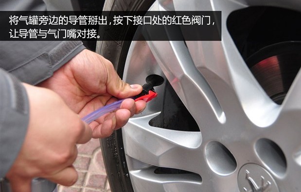 从透明导管中可以看出,补胎液会将压缩气罐内的液体快速充入轮胎中,并且亏气瘪掉的轮胎明显开始充气抬升,整个过程非常迅速,肉眼完全可以观察到。
