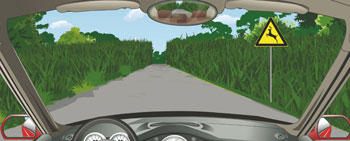 A、 靠路中心行驶