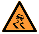试题解释:易滑:此标志设在路面的摩擦系数不能满足相应行驶速度下要求紧急刹车距离的路段前适当位置。行驶至此路段必须减速慢行。 |