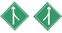 | 47、图中标志是合流诱导标志,表示前方有合流车道,注意与驶入主车道的车辆保持安全距离。 正确 错误 正确答案: