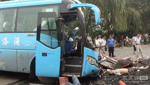 洛阳新安县310国道车祸 中巴客车与运煤货车相撞 致5人遇难