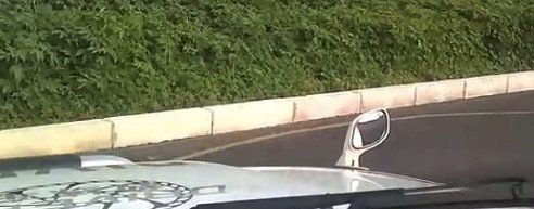 需要说明的是,在第二个弯的时候,当扫起线走后,在最后要出去的时候,不是看不到线了撒,千万不要慌,看到反光镜里面距离黑合适,还是保持不动方向盘,这样一动就打倒哦。你只要控制好车速,当车子慢慢的出来了,在回正方向盘的哈。